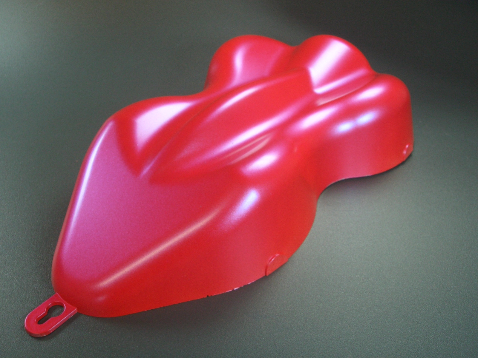 1. wird ein roter Basislack ( matt ) lackiert , oder der guterhaltene ( rote ) alte Fahrzeuglack angeschliffen ( ca. 400-600er Körnung )