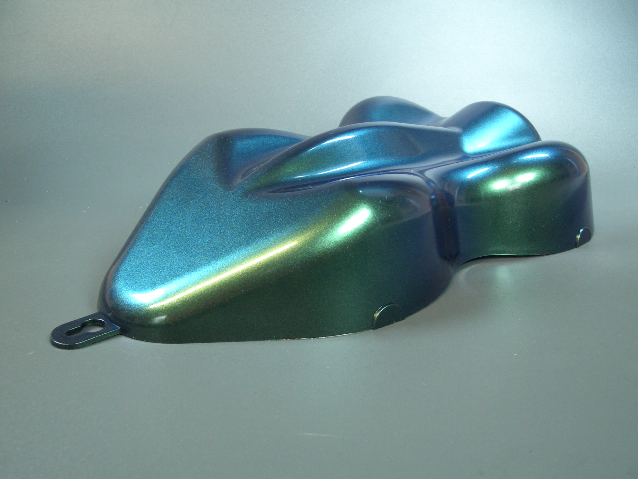 Der Effekt wechselt von  Goldgrün über Grün  zu Blau