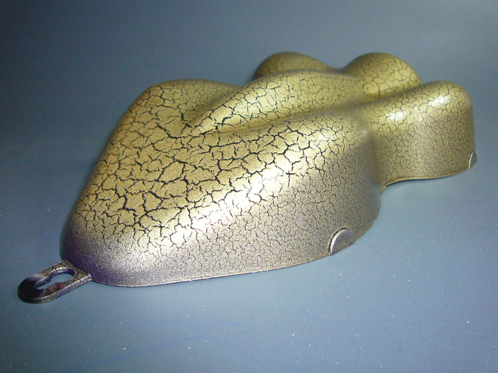 3. Reißlack in mehreren Schichten naß in naß spritzen. Je dicker die aufgetragene Schichtstärke ist, umso größer wird die Rissbildung .( ABB. wurde mit 4 Schichten lackiert )