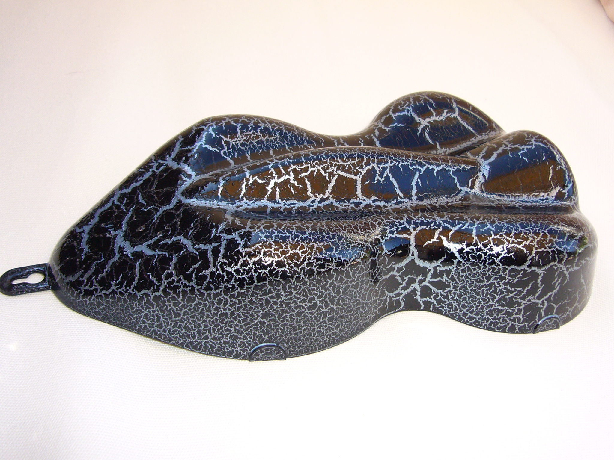3. Reißlack in mehreren Schichten naß in naß spritzen. Je dicker die aufgetragene Schichtstärke ist, umso größer wird die Rissbildung .( ABB. wurde mit 6 Schichten lackiert )